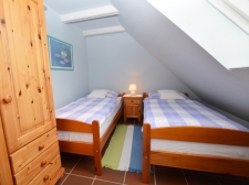 Schlafzimmer mit 2 Einzelbetten, Nachttisch und Kleiderschrank